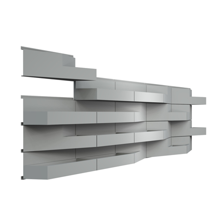 Parametric panels are the most intricate with a unique sloping and tapering style. These panels may be installed horizontally or vertically, and allow for the addition of custom transverse score patterns, cut holes, graphics, letters or logos which can also be backlit with Integrated LEDs. Holes can also be incorporated for receiving planters for growing vegetation. Parametric offers a high degree of 3D design options.